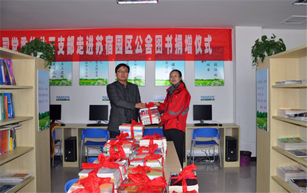 11月17日上午,蘇大教服集團(tuán)黨委物業(yè)三支部陳彤彤書(shū)記一行走進(jìn)園區(qū)公舍開(kāi)展圖書(shū)捐贈(zèng)活動(dòng),建發(fā)公司副總經(jīng)理張?bào)K同志參加了此次活動(dòng)。