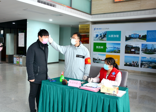 陳紅是公司綜合檔案室副主任,民盟蘇宿園區(qū)直屬支部主委,也是一位10個(gè)月大的寶媽?zhuān)瑸槿硇耐度肟?ldquo;疫”,想方設(shè)法將婆婆從外地接回身邊照顧孩子。她在做好本職工作的同時(shí),主動(dòng)請(qǐng)纓,要求增援加入蘇宿工業(yè)坊抗“疫”隊(duì)伍,每天在園區(qū)管理樓一樓大廳值守,為大家測(cè)量體溫,進(jìn)行人員出入信息登記,用實(shí)際行動(dòng)為防控貢獻(xiàn)力量。