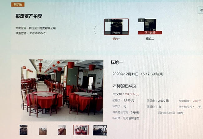 12月11日下午3時(shí),城發(fā)公司部分報(bào)廢廚具、桌椅等物資網(wǎng)上拍賣(mài)開(kāi)始,10家競(jìng)買(mǎi)人,經(jīng)過(guò)17分39秒90次的緊張激烈競(jìng)價(jià),最終以20555元成交標(biāo)的,比評(píng)估價(jià)超出10倍。