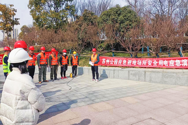 為進(jìn)一步落實(shí)園區(qū)安委會全體(擴(kuò)大)會議與公司安全專題會議精神,強(qiáng)化應(yīng)急預(yù)案保障措施,提高項目部應(yīng)對安全生產(chǎn)事故和突發(fā)性事件的處理能力, 3月3日城發(fā)公司組織監(jiān)理、施工單位在蘇州公園應(yīng)急避難場所項目現(xiàn)場開展安全用電應(yīng)急演練。