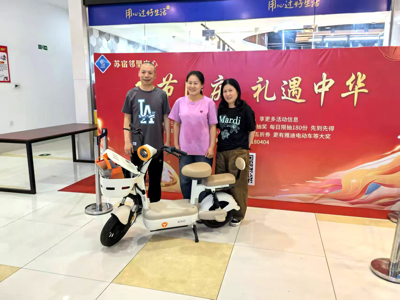 本次消費兌好禮活動覆蓋整個黃金周,顧客憑當日消費滿76元憑證即可參與。抽得價值1800元的雅迪電動車大獎的幸運顧客王女士激動地表示:“沒想到在鄰里中心能中這么大的獎,這個假期過得真的特別有意義!”此外,包括品牌培訓商戶精品課程五折券、品牌小家電、放健身五折券及千元購物券等在內的數(shù)千份獎品也各歸其主,活動圓滿結束。