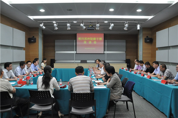 6月15日下午,受蘇州市委常委、組織部長陸新委托,蘇州市委組織部周昌明副部長一行3人來宿,在園區(qū)管委會(huì)一樓會(huì)議室召開座談會(huì),專程看望慰問蘇州派駐宿遷掛職干部。宿遷市委常委、組織部長李健陪同慰問,副市長、蘇宿工業(yè)園區(qū)黨工委書記、管委會(huì)主任方文浜主持座談會(huì)。