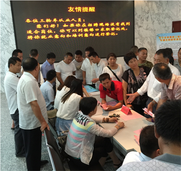 目前宿遷市區(qū)三輪車仍有很多,園區(qū)也有一定數(shù)量三輪車存在,本次招聘會(huì)的成功舉辦有效幫助原三輪車從業(yè)人員盡快實(shí)現(xiàn)轉(zhuǎn)行、轉(zhuǎn)崗,從而確保市區(qū)載客三輪車百日整治行動(dòng)順利完成。