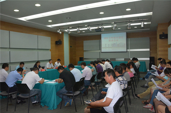 園區(qū)五城同創(chuàng)工作領(lǐng)導(dǎo)小組全體成員,園區(qū)社工委,部分工業(yè)企業(yè)、餐飲單位、建筑施工單位負(fù)責(zé)人參加會(huì)議。