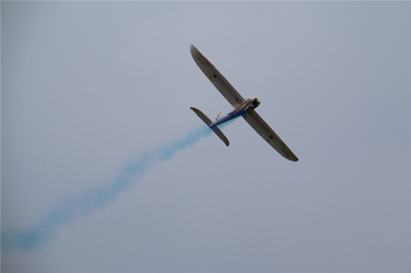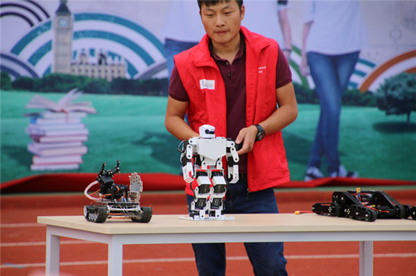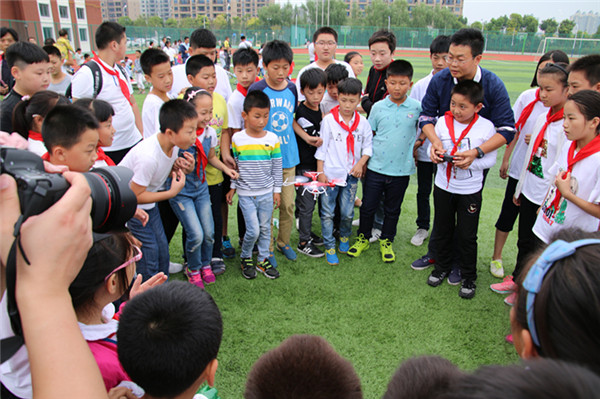表演中,兩臺(tái)多軸飛機(jī)在場(chǎng)地作繞場(chǎng)及8字飛行,在飛行4分鐘后,隨著背景的高潮音樂響起,在空中打開了橫幅——“共創(chuàng)文明社區(qū),締造幸福家園?!彪S后,無論是機(jī)器人的介紹演示、固定翼無人機(jī)的拉煙表演還是直升機(jī)表演,又或是像真機(jī)空中格斗飛行,都讓同學(xué)們?cè)诨?dòng)和操作中充分感受到了科技的飛速發(fā)展,拓展了視野,更對(duì)航空模型制作產(chǎn)生了濃厚的興趣。